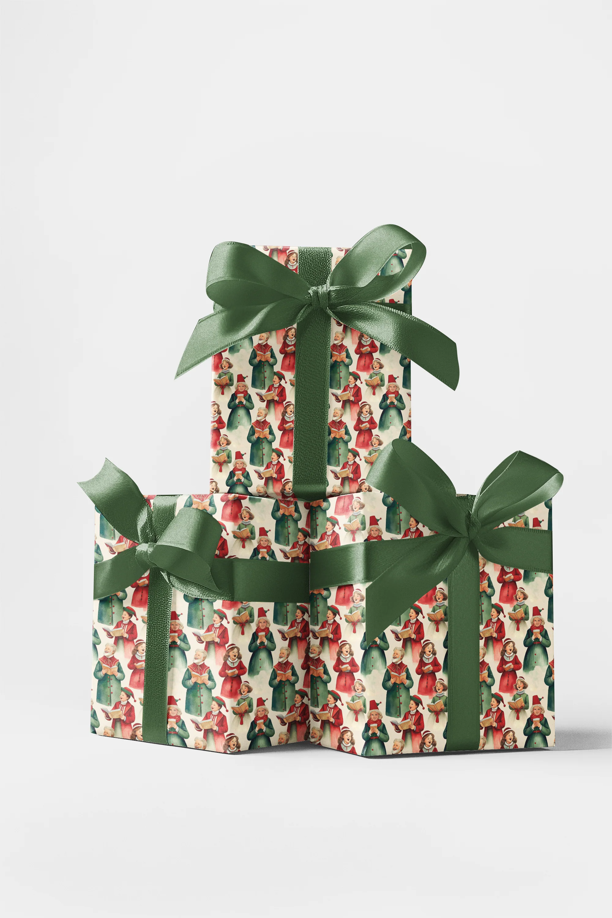 Bring classic holiday charm to every gift with this wrap featuring vintage-style carolers in festive reds, greens, and creams. Perfect for those who love timeless Christmas traditions, it adds a nostalgic, elegant touch to your holiday presents.