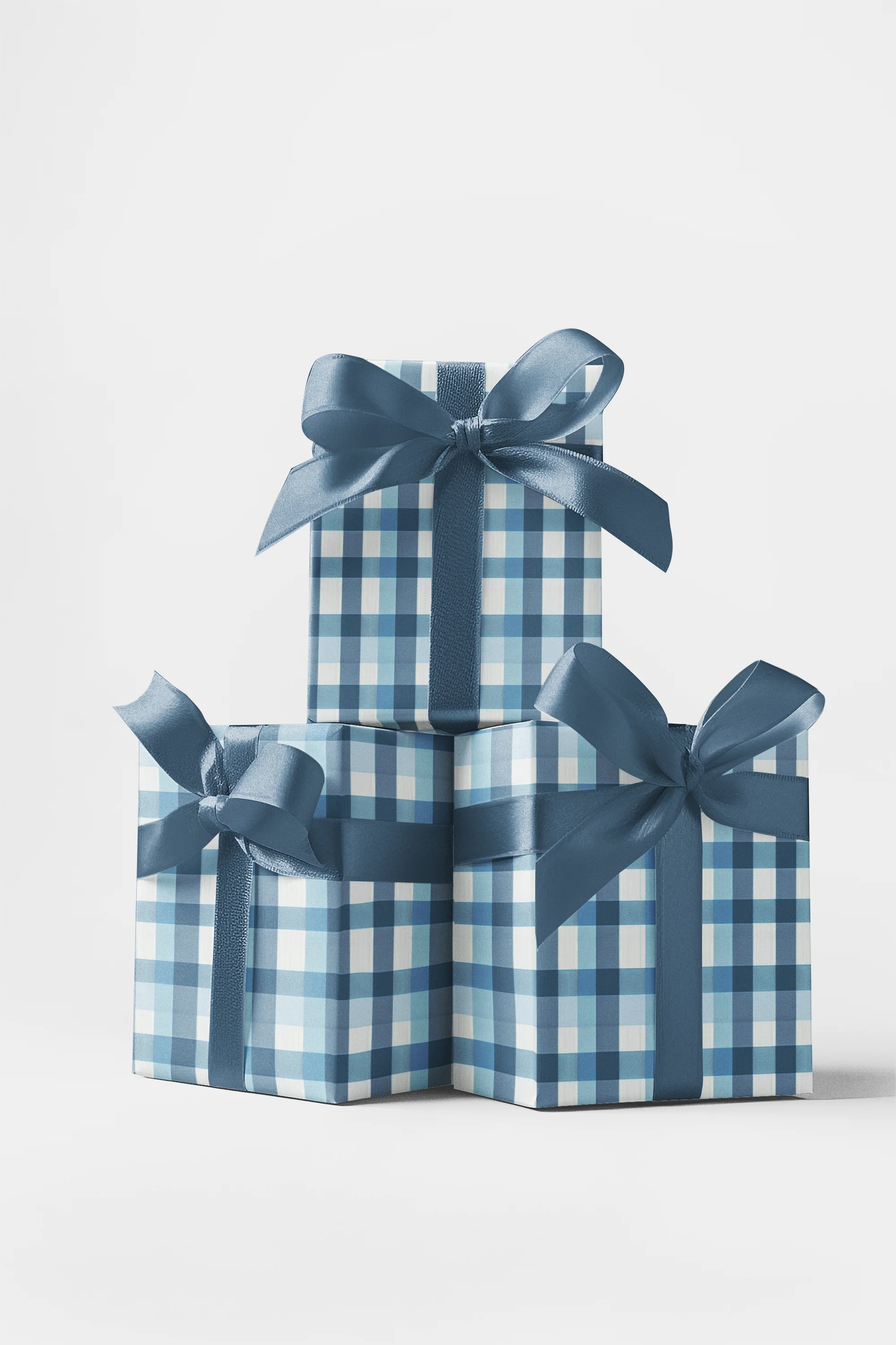 Celebrate every occasion with the refreshing charm of our Gingham Gala wrapping paper. This timeless, woven-style plaid features a beautiful coastal palette of sky blue, deep teal, and crisp white. The design offers a clean, versatile backdrop perfect for birthdays, baby showers, summer parties, and all-season gifting. Its classic, sophisticated simplicity ensures your gifts look effortlessly polished and inviting.