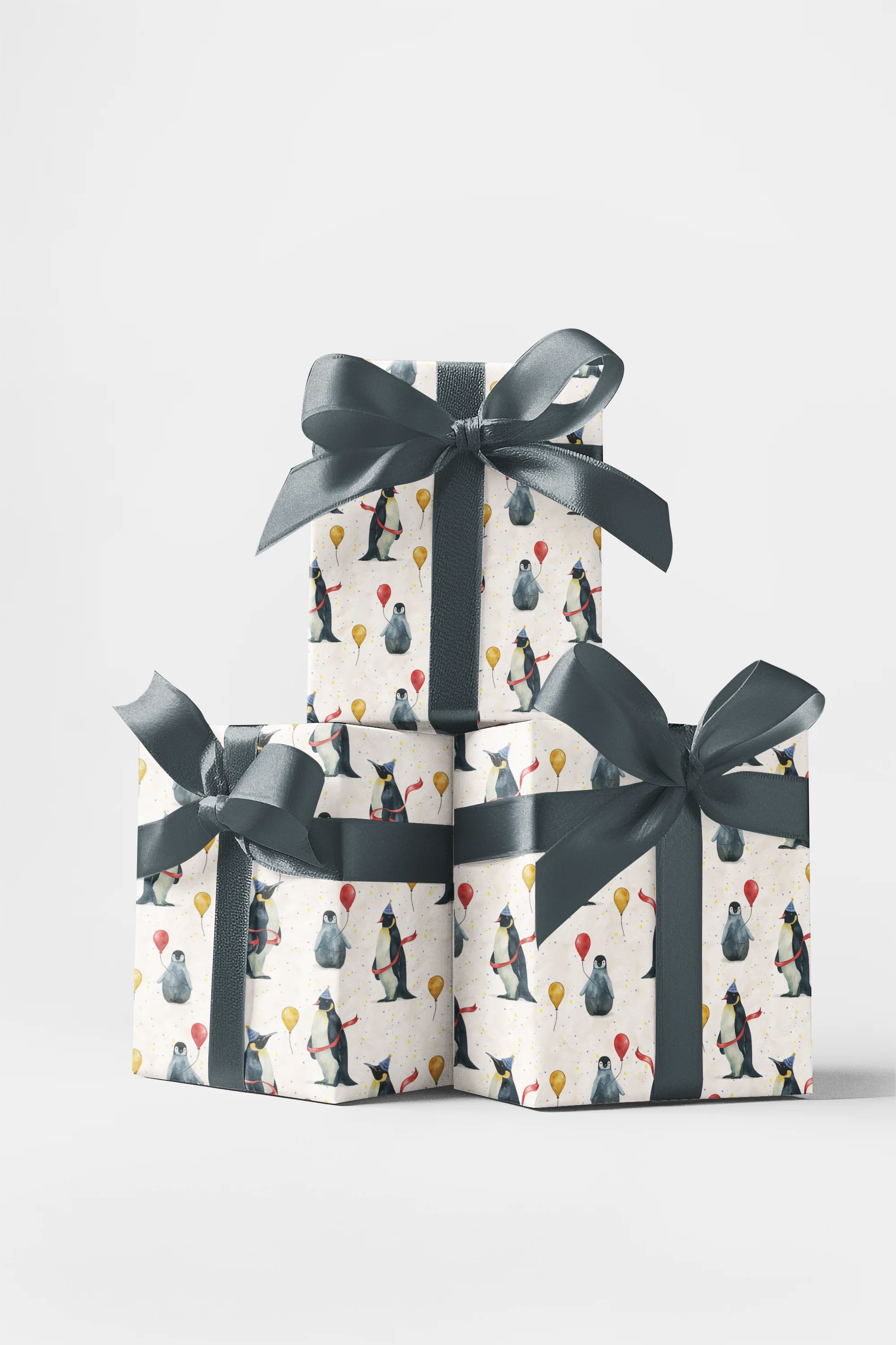 Penguin Party Parade is a cheerful wrapping paper bursting with playful penguins marching in festive formation. Dressed in colorful scarves, hats, and holiday cheer, these adorable birds bring a wintry charm to every gift. Perfect for birthdays, winter celebrations, or just adding a splash of joy, this design turns every present into a waddling good time.