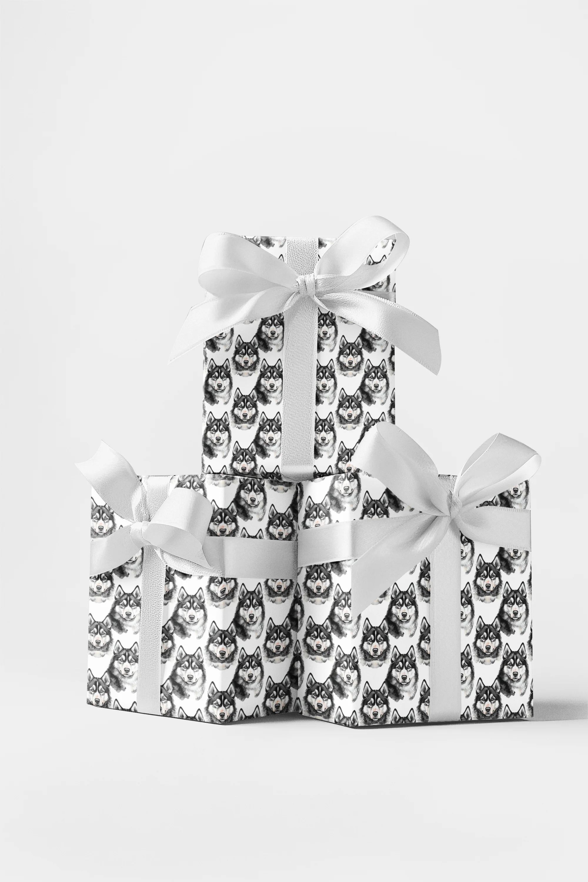 Celebrate the beauty and spirit of the North with our Snow Trails & Husky Tails wrapping paper and matching gift tags. Featuring watercolor portraits of the majestic Siberian Husky, each dog’s striking black, white, and gray coat shines against a crisp white background. Perfect for Husky lovers, winter enthusiasts, and anyone who appreciates bold, pet-themed designs. Ideal for gifts that stand out during the snowy season.