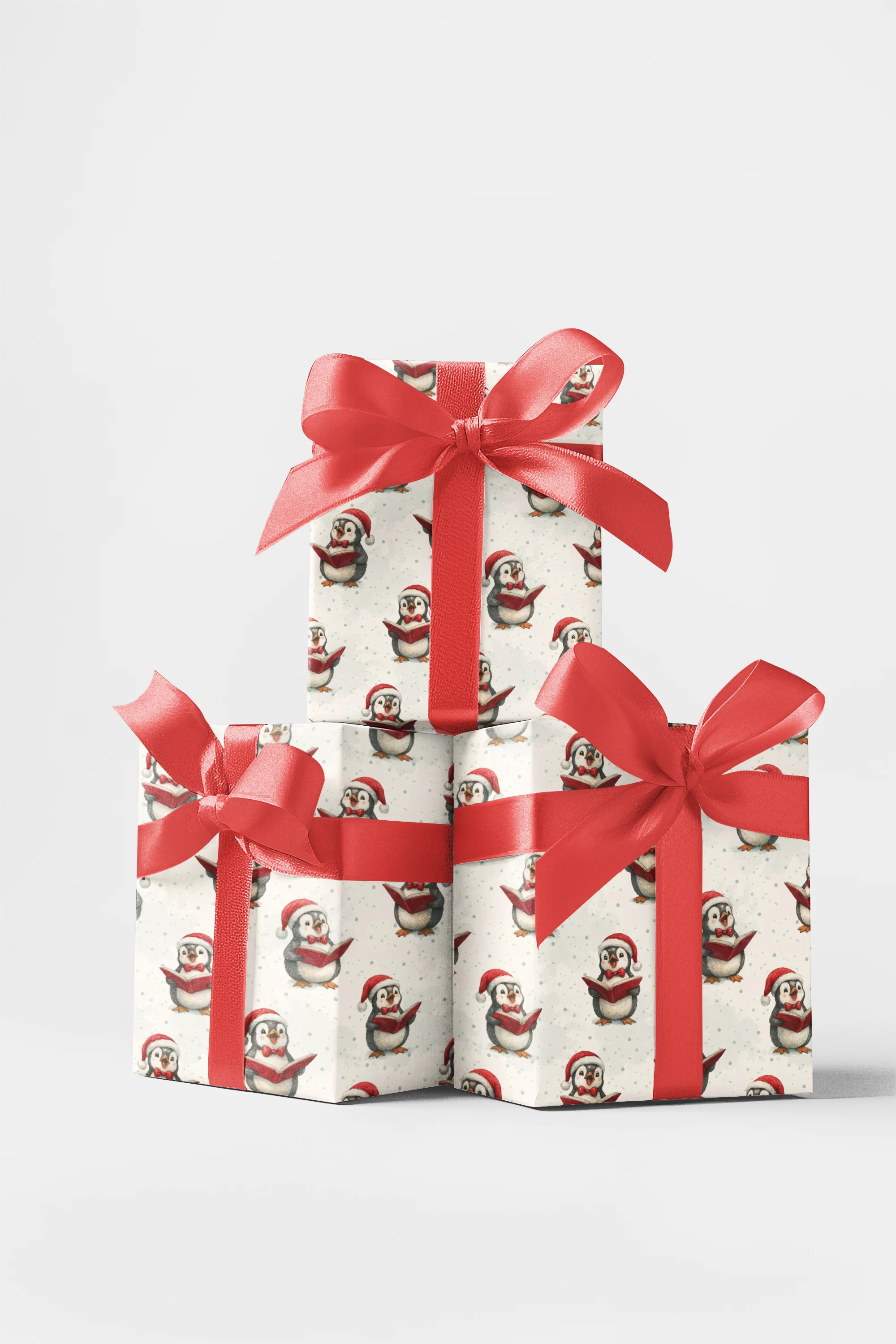 Joyful and festive, the Penguins bring holiday harmony to this captivating wrapping paper design. Gathered together in cheerful song, their playful spirit and timeless presence shine through, adding both warmth and seasonal magic to every gift. Perfect for Christmas lovers and any occasion, this design celebrates the beauty and individuality of these remarkable creatures.