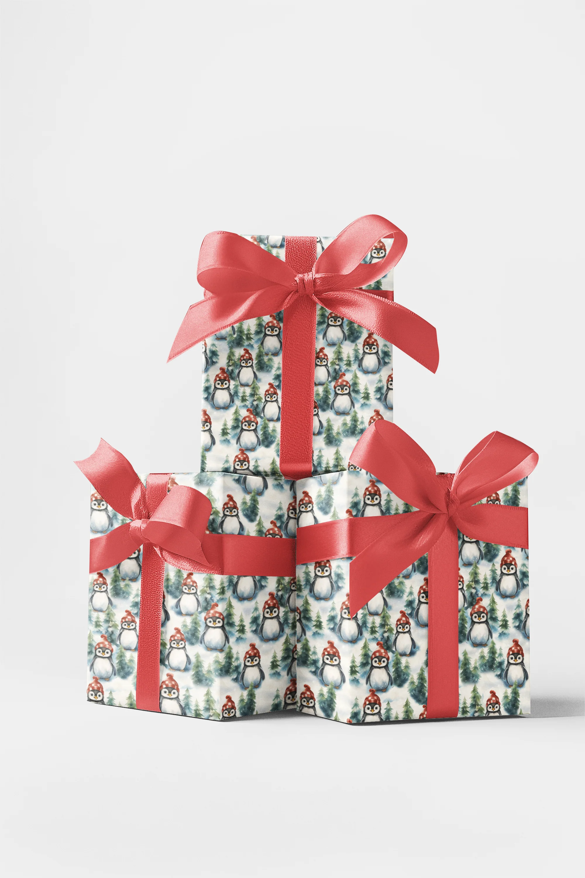 Adorable and festive, the Penguin brings wintry charm to this captivating wrapping paper design. Wearing a bright red snow knit cap and surrounded by pine trees, its playful spirit and timeless presence shine through, adding both warmth and holiday magic to every gift. Perfect for Christmas lovers and any occasion, this design celebrates the beauty and individuality of this remarkable creature.